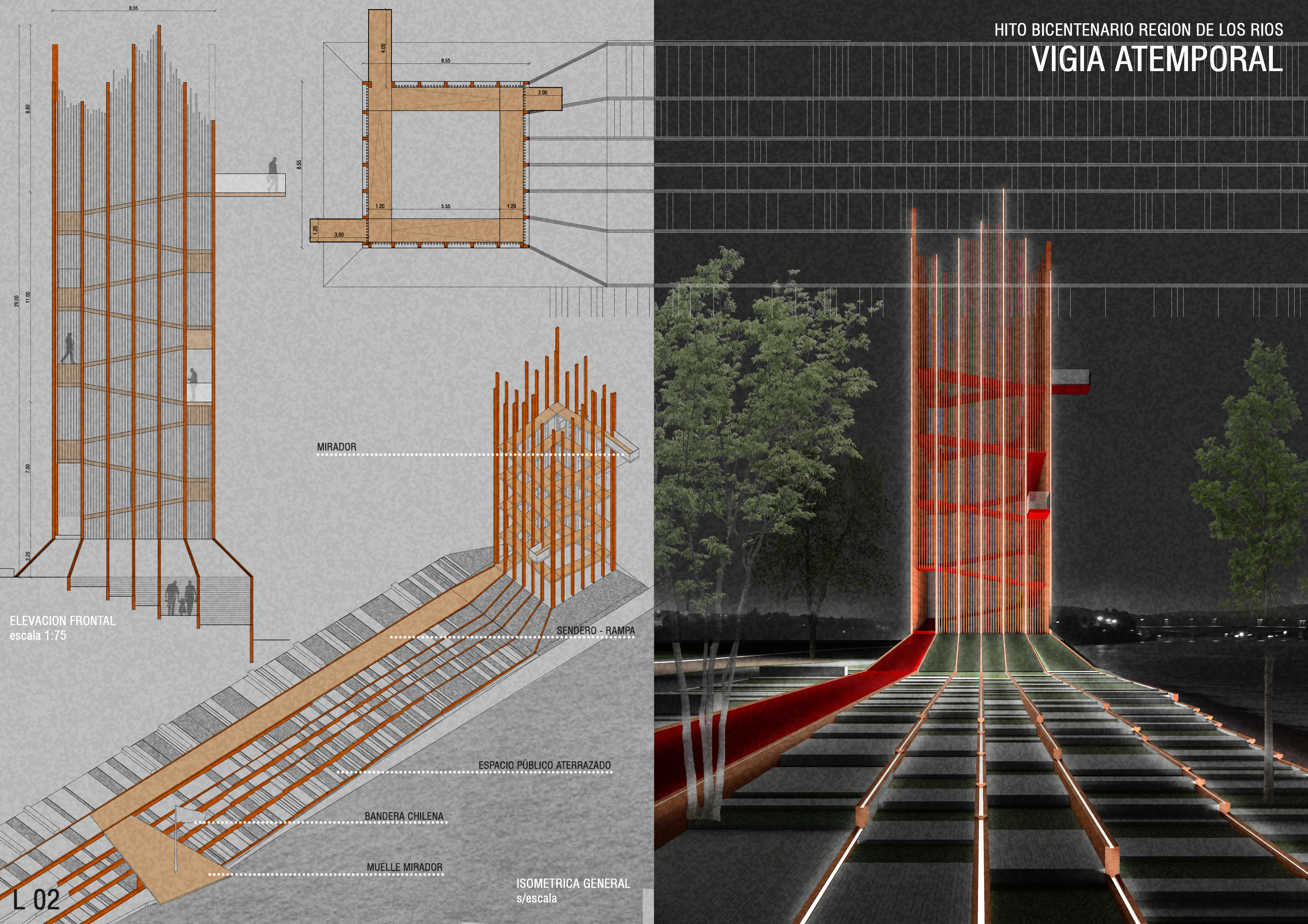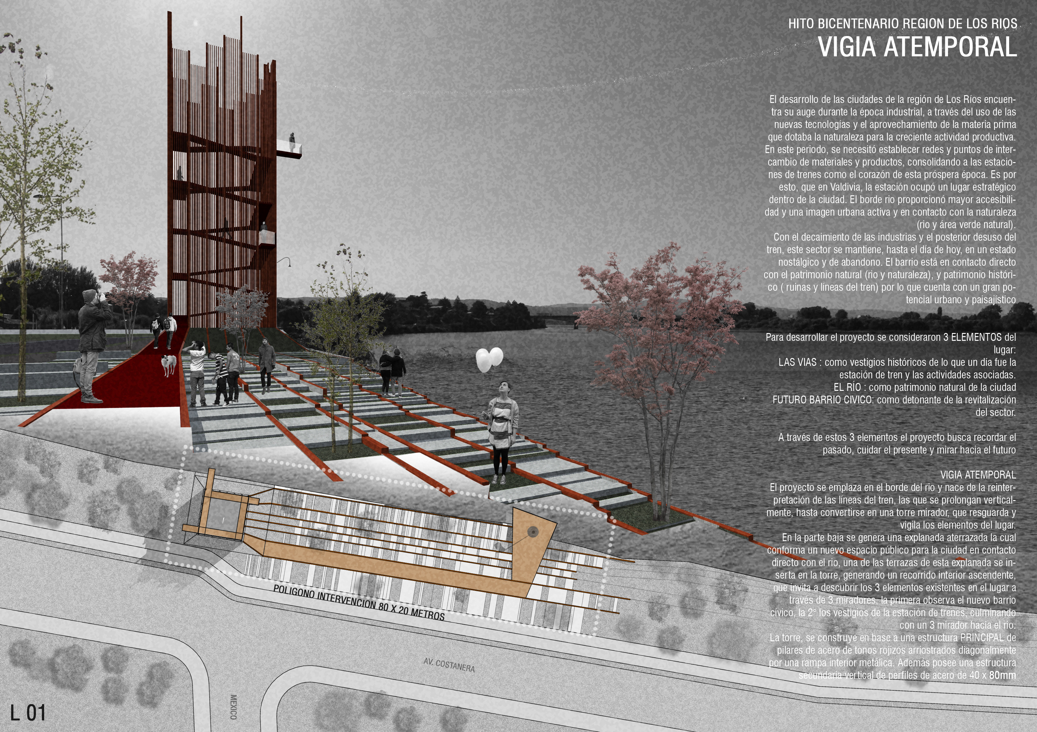 Hito Bicentenario Ubicación: Barrio Estación. Valdivia, ChileArquitectos: Mauricio Silva Jerez, Pamela Reyes PérezSuperficie: 1600 m2Año: 2015Estado: Idea / Anteproyecto / Concurso (1er Lugar) Relacionado